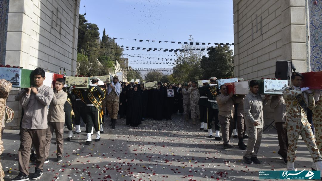 مردم شیراز در آیینی معنوی، پیکر ۱۶ شهید گمنام و یک شهید بانام را از دروازه قرآن تا معراج شهدای شیراز همراهی کردند.