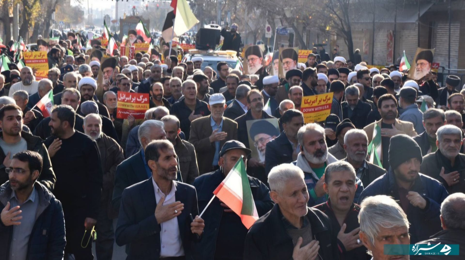 همچنین مردم شیراز با فریاد مرگ بر اسرائیل و مرگ بر آمریکا انزجار خود را از استکبار اعلام کردند.