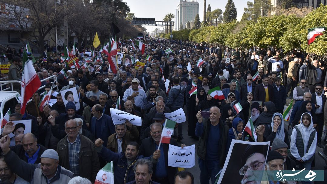سیل عظیمی از مردم ولایتمدار شیراز انزجار خود را از استکبار و آشوبگران دست نشانده صهیونیستی اعلام نمودند.