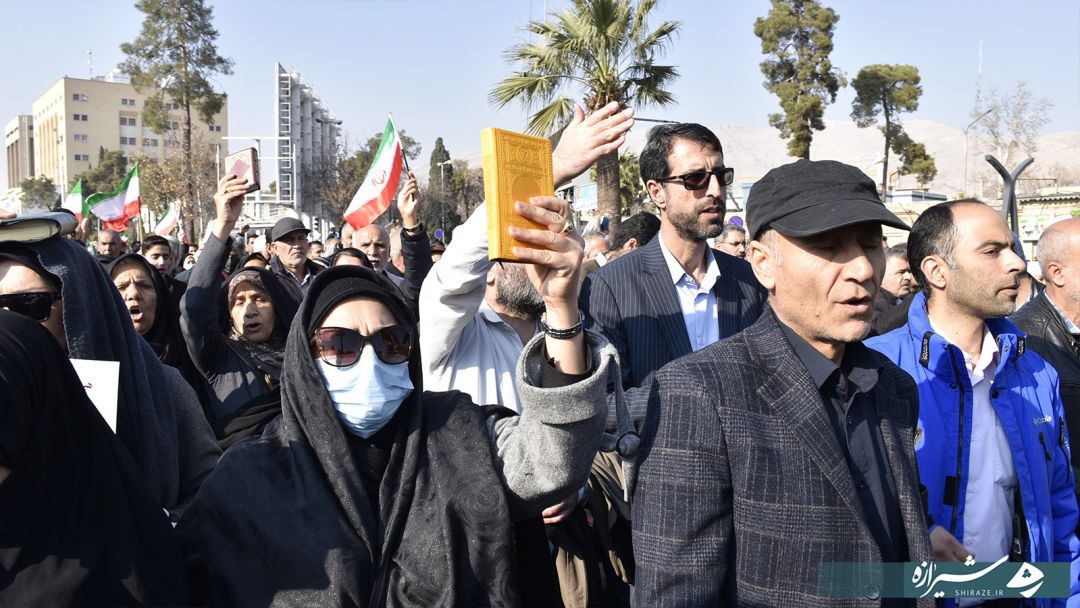 این راهپیمایی از میدان امام حسین (ع) به سمت حرم مطهر حضرت شاهچراغ (ع) با در دست داشتن قران کریم، تصاویر شهدا، و پرچم ملی جمهوری اسلامی ایران، انزجار خود را از آشوبگران و تروریستانی که به کلام خدا اهانت کرده بودند همراه بود.